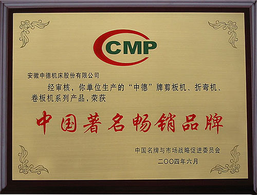 中德牌機(jī)床獲得“中國著名暢銷品牌”榮譽(yù)稱號