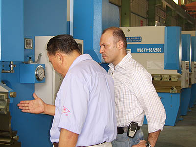 2005年6月23日上午,位于沙特阿拉伯首都利雅得市的沙特納美拉空壓機廠廠長阿貝德·塔巴拉等一行來我公司參觀考察,阿貝德先生此行主要來考察我公司折彎機、剪板機產(chǎn)品,考察中對我公司產(chǎn)品外觀、結(jié)構(gòu)均表示滿意并與我公司達(dá)成進(jìn)一步合作的意向!