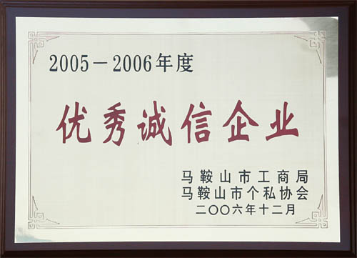 我公司獲市工商局“05-06年度優(yōu)秀誠(chéng)信企業(yè)”稱號(hào)