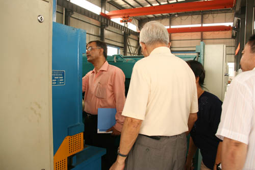 在公司領(lǐng)導(dǎo)的陪同下,PRAKASH先生參觀了公司的成品車間和生產(chǎn)車間,對我公司的生產(chǎn)及研發(fā)能力表示出極大的贊賞。我公司智能化的辦公和流水線系統(tǒng)吸引了PRAKASH先生一行。在操作人員的協(xié)作下,有著二十多年從業(yè)經(jīng)驗的PRAKASH先生對我公司的QC11Y大型機(jī)床進(jìn)行了細(xì)致入微的考察,而我公司的機(jī)床也以其過硬的品質(zhì)和精密的設(shè)計贏得了PRAKASH先生的好評。