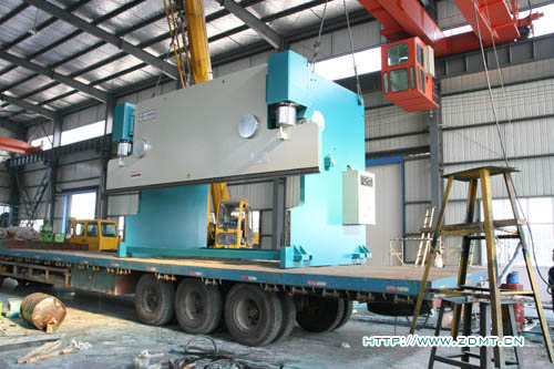 由于機(jī)器體積較大,高度超過(guò)3.5米,重量在50噸以上,所以采用了分體式運(yùn)輸,工作臺(tái)與機(jī)器主體分離開(kāi)來(lái)。這種大型機(jī)床由于其體積與重量的關(guān)系,并不是很常見(jiàn),需求量相對(duì)來(lái)講少點(diǎn),而對(duì)制造商的要求也相對(duì)比較高,其中無(wú)不體現(xiàn)中德產(chǎn)品在客戶(hù)心目中認(rèn)可度!